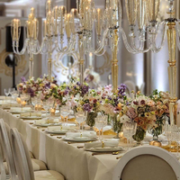 Candelabros com 7 braços de decoração de mesa, candelabros de cristal k9 de altura com base circular, tubos de vidro